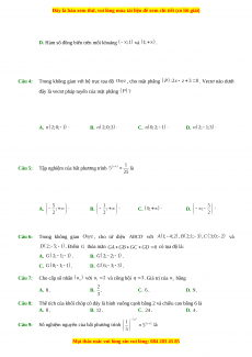 đây là vectơ pháp tuyến của mặt phẳng ? A. B. C. D. Câu 5: