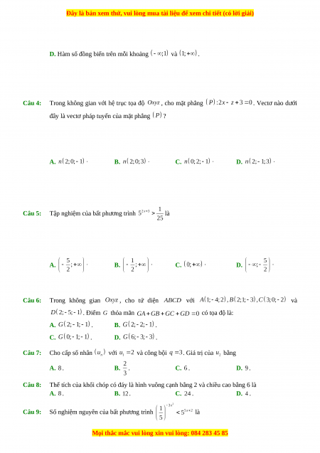 Đây là bản xem thử, vui lòng mua tài liệu để xem chi tiết (có lời giải)