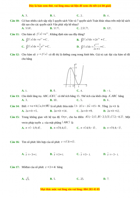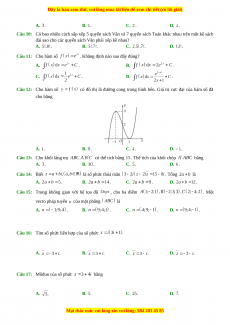 dài sao cho các quyển sách Văn phải xếp kề nhau? A. . B. . C. . D. . Câu 11: Cho hàm số