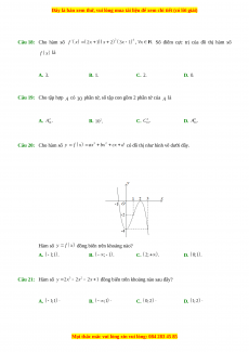 Câu 19: Cho tập hợp có phần tử, số tập con gồm 2 phần tử của là A. B. C. D. Câu 20: Cho hàm số