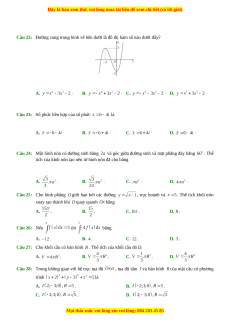 . Thể tích của khối chóp bằng A. . B. . C. . D. . Câu 14: Biết là số phức thỏa mãn . Tổng là A. . B. . C. . D. .