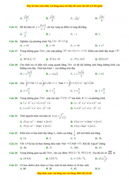 Đây là bản xem thử, vui lòng mua tài liệu để xem chi tiết (có lời giải)