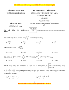 TRƯỜNG THPT YÊN Đ N Ị H 2 CÁC MÔN THI T T Ố NGHI P Ệ THPT L N Ầ 2 NĂM HỌC 2020 - 2021 Môn: TOÁN Ngày thi 28/3/2021 Đ C Ề HÍNH TH C Ứ Th i