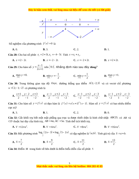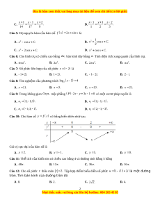 Đây là bản xem th , vu ử i lòng mua tài li u ệ đ xe ể m chi ti t ế (có l i ờ gi i ả ) x 1 y 1 z 2 x 1 y 1 z 2 C. . D. . 14 17 9 1 2 3 Câu 5: H nguyê ọ n hàm c a ủ hàm s ố f x 2