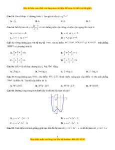 MNP có phư ng t ơ rình là x y z x y z A. 0 . B. 1. 2 1 2 2 1 2 x y z x y z C. 1. D. 1 . 2 1 2 2 1 2 Câu 16: V i ớ a là s t ố h c ự dư ng ơ tùy ý, log 9a 3 bằng A. 2 log . a 9 log . a 2 log . a 2 log . a 3 B. 3 C. 3 D. 3
