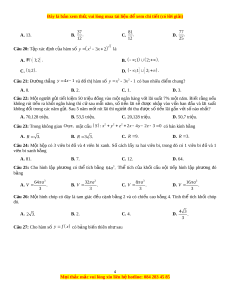 ấ ra hai viên bi, trong đó có 1 viên bi đ ỏ và 1 viên bi xanh bằng A. 81. B. 7. C. 12. D. 64. Câu 25: Cho hình l p ậ phư ng ơ có thể tích b ng ằ 3 64a . Thể tích c a ủ kh i ố c u ầ n i ộ ti p ế hình l p ậ phư ng ơ đó bằng 3 64 a 3 32 a 3 8 a 3 16 a A. V . B. V . C. V . D. V . 3 3 3 3 Câu 26: M t