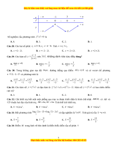 ộ hình chóp có đáy là tam giác đ u ề c nh ạ b ng ằ 2 và có chi u ề cao b ng ằ 4. Tính th ể tích kh i ố chóp đó. 4 3 A. 2 3. B. 2. C. 4. D. . 3 Câu 27: Cho hàm s