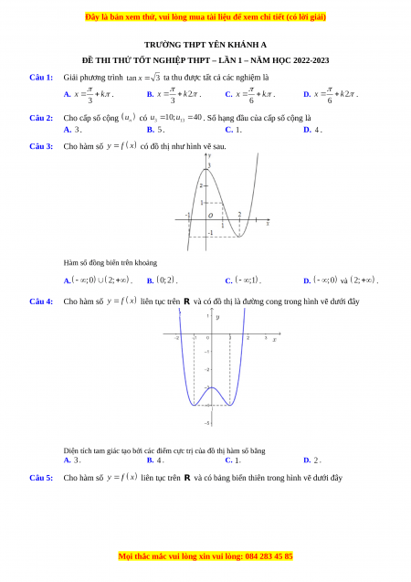 Đề thi thử Toán trường Yên Khánh A lần 1 năm 2023