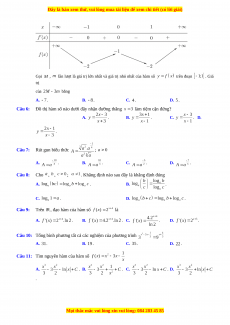 Đồ thị hàm số nào dưới đây nhận đường thẳng làm tiệm cận đứng? A. . B. . C. . D. . Câu 7: Rút gọn biểu thức ; A. . B. . C. . D. . Câu 8: Cho , , ;