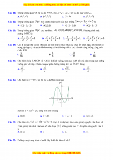 Câu 21: Trong không gian với hệ tọa độ , cho . Tìm tọa độ của vectơ .