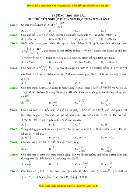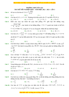 Đề thi thử Toán trường Yên Lạc lần 3 năm 2023