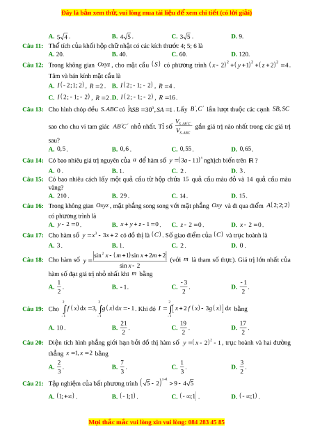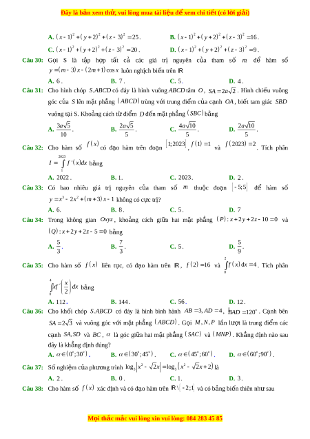 Đây là bản xem th , vu ử i lòng mua tài li u ệ đ xe ể m chi ti t ế (có l i ờ gi i ả ) A. 5 4 . B. 4 5 . C. 3 5 . D. 9.