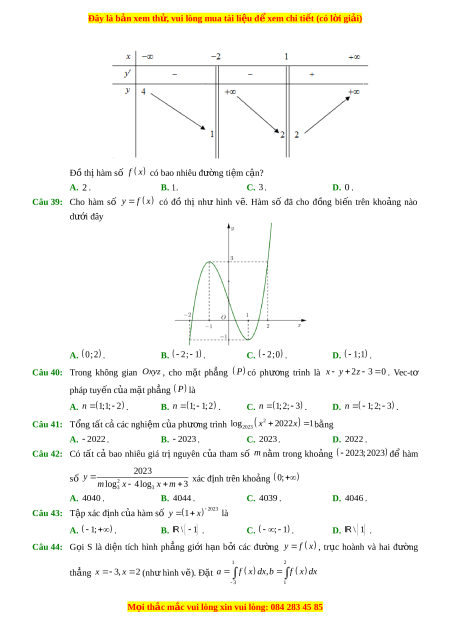 D. 60;90 . Câu 37: S nghi ố ệm c a ủ phư ng t ơ rình 2 log x 2x l og 2 x 2x 2 3 5 là A. 2 . B. 0 . C. 1. D. 3 . Câu 38: Cho hàm s