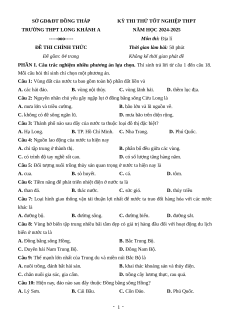 Đề thi thử tốt nghiệp 2025 Địa lí THPT Long Khánh A - Đồng Tháp