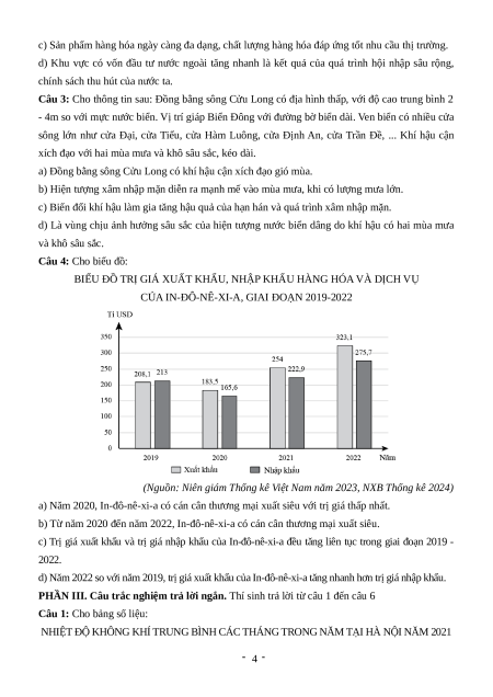 c) Trị giá xuất khẩu và trị giá nhập khẩu của In-đô-nê-xi-a đều tăng liên tục trong giai đoạn 2019 - 2022.