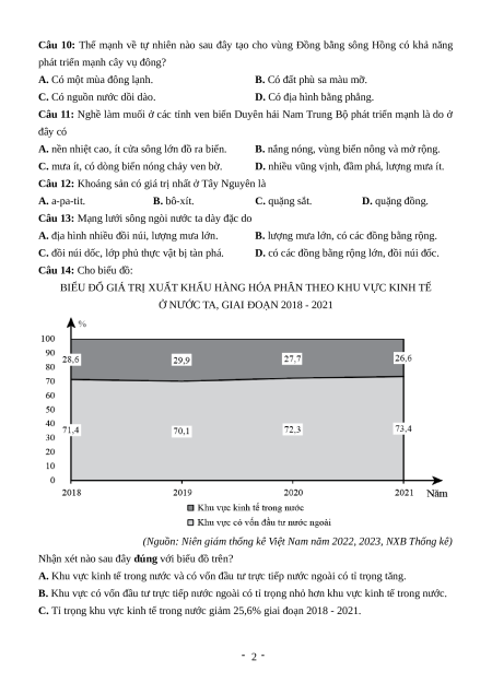 Mỗi câu hỏi thí sinh chỉ chọn một phương án.