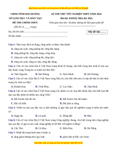 Bài thi: KHXH; Môn thi: ĐỊA ĐỀ THI CHÍNH THỨC