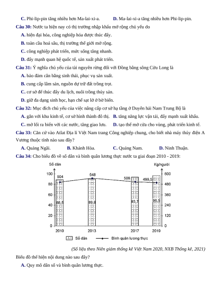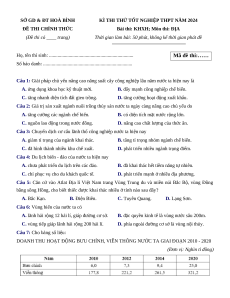 Đề thi thử tốt nghiệp Địa lí Sở Giáo dục Hòa Bình lần 2 năm 2024