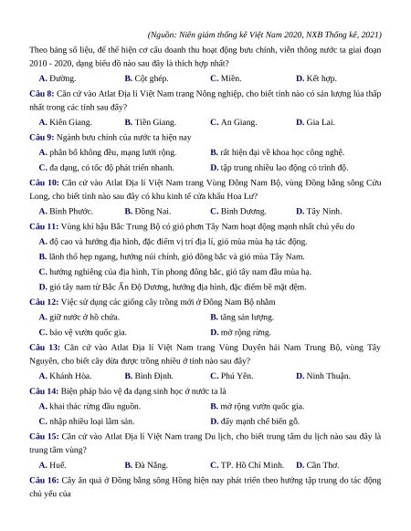 Câu 10: Căn cứ vào Atlat Địa lí Việt Nam trang Vùng Đông Nam Bộ, vùng Đồng bằng sông Cửu