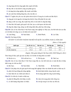 Câu 8: Căn cứ vào Atlat Địa lí Việt Nam trang Nông nghiệp, cho biết tỉnh nào có sản lượng lúa thấp