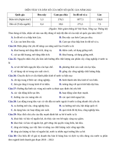 Câu 4: Căn cứ vào Atlat Địa lí Việt Nam trang Dân số, cho biết đô thị nào sau đây là đô thị đặc biệt? A. Hà Nội. B. Quy Nhơn. C. Thanh Hoá. D. Nha Trang.