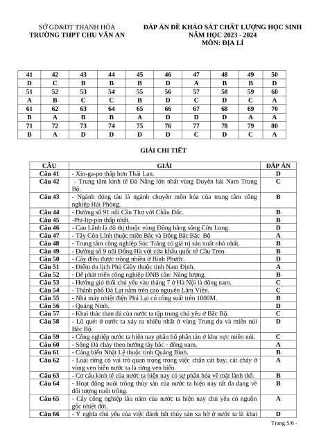 Đề thi thử tốt nghiệp Địa lí trường THPT Chu Văn An năm 2024