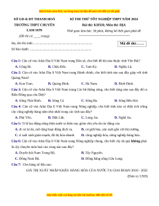 Bài thi: KHXH; Môn thi: ĐỊA LAM SƠN