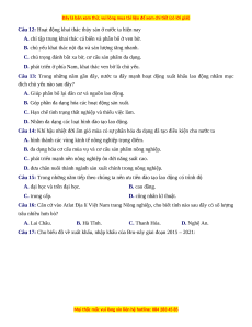 Câu 14: Khí hậu nhiệt đới ẩm gió mùa có sự phân hóa đa dạng đã tạo điều kiện cho nước ta
