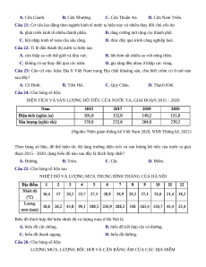 Câu 5: Căn cứ vào Atlat Địa lí Việt Nam trang Du lịch, cho biết vườn quốc gia nào sau đây nằm trên đất liền? A. Phú Quốc. B. Côn Đảo. C. Tràm Chim. D. Cát Bà.
