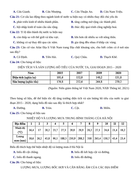 Câu 23: Căn cứ vào Atlat Địa lí Việt Nam trang Địa chất khoáng sản, cho biết crôm có ở nơi nào sau đây? A. Cổ Định. B. Tiền Hải. C. Quỳ Châu. D. Thạch Khê.