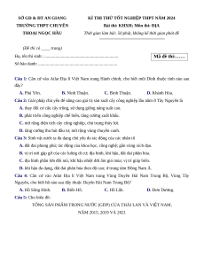 Đề thi thử tốt nghiệp Địa lí trường THPT Chuyên Thoại Ngọc Hầu - An Giang năm 2024