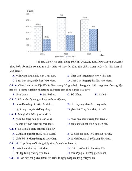 Câu 11: Các mặt hàng xuất khẩu của nước ta ngày càng đa dạng chủ yếu do