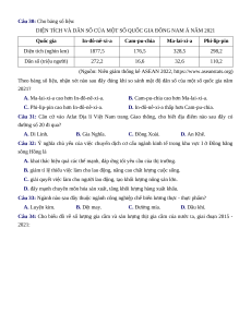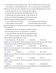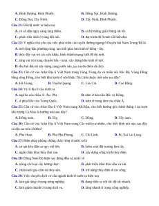 Câu 18: Căn cứ vào Atlat Địa lí Việt Nam trang Du lịch, cho biết vườn quốc gia nào sau đây thuộc vùng Bắc Trung Bộ? A. Ba Bê. B. Côn Sơn. C. Vũ Quang. D. Ba Vì.
