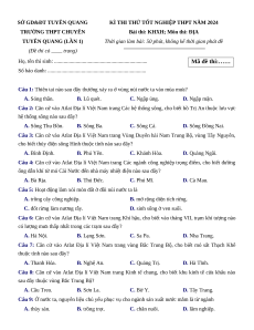 Bài thi: KHXH; Môn thi: ĐỊA TUYÊN QUANG (LẦN 1)