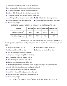 DIỆN TÍCH VÀ MẬT ĐỘ DÂN SỐ CỦA MỘT SỐ QUỐC GIA NĂM 2021 4