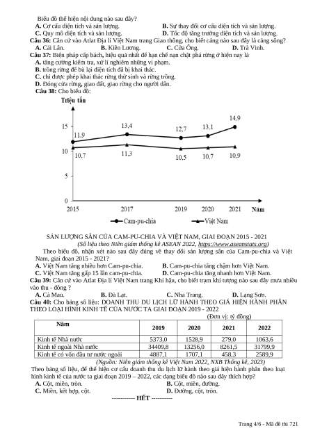 (Số liệu theo Niên giám thống kê Việt Nam 2022, https://www.gso.gov.vn) Trang 3/6 - Mã đề thi 721
