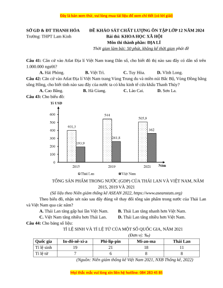 Trường: THPT Lam Kinh Bài thi: KHOA HỌC XÃ HỘI