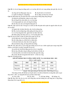 Câu 75: Cho bảng số liệu: