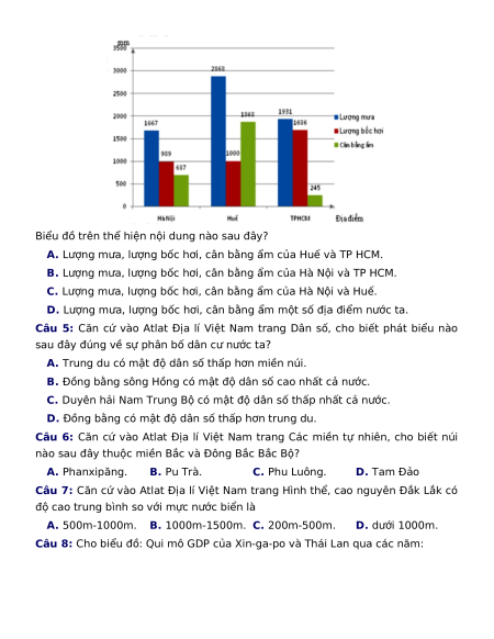 2 D. Lượng mưa, lượng bốc hơi, cân bằng ẩm một số địa điểm nước ta.