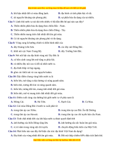 Câu 1: Phần lớn biên giới trên đất liền nước ta nằm ở khu vực A. miền núi. B. cao nguyên. C. sơn nguyên. D. đồng bằng.