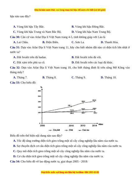 Bài thi: KHXH; Môn thi: ĐỊA LÍ