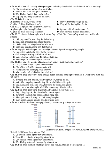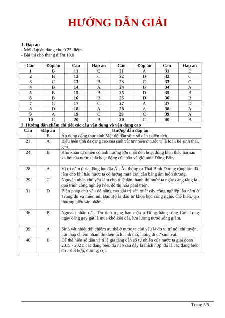 - Thí sinh được sử dụng Atlat Địa lí Việt Nam do Nhà xuất bản Giáo dục phát hành từ năm 2009 đến nay. Trang 4/5
