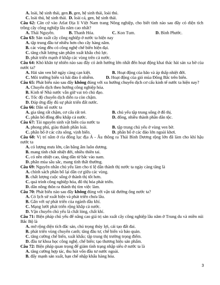 Câu 68: Vị trí nằm ở rìa đông lục địa Á - Âu thông ra Thái Bình Dương rộng lớn đã làm cho khí hậu nước ta