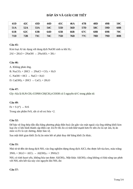 Câu 45: Kim loại Al tác dụng với dung dịch NaOH sinh ra khí nào sau đây? A. O3. B. N2. C. H2. D. O2.