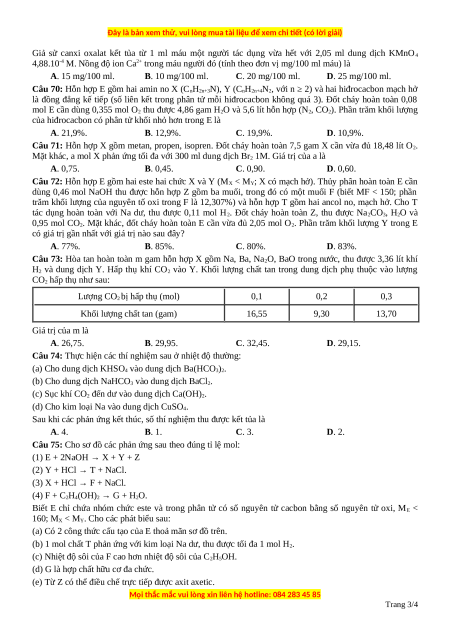Câu 72: Hỗn hợp E gồm hai este hai chức X và Y (MX < MY; X có mạch hở). Thủy phân hoàn toàn E cần