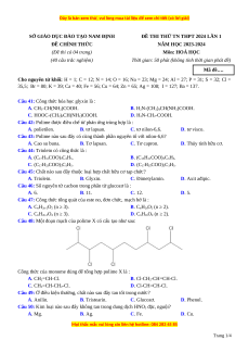 Đề thi thử tốt nghiệp Hóa học Sở GDĐT Nam Định lần 1 năm 2024