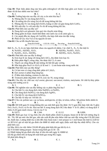Câu 59: Thực hiện phản ứng este hóa giữa etilenglicol với hỗn hợp gồm axit fomic và axit axetic thu