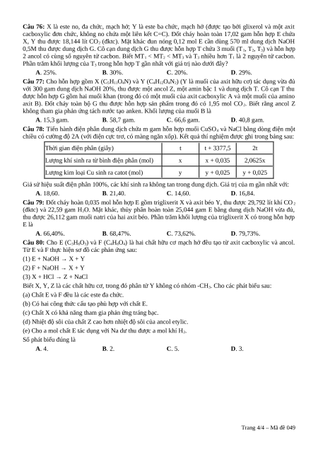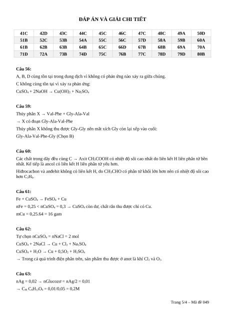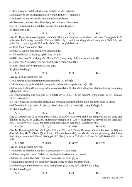 Câu 70: Cho các phát biểu sau: Trang 2/4 – Mã đề 049