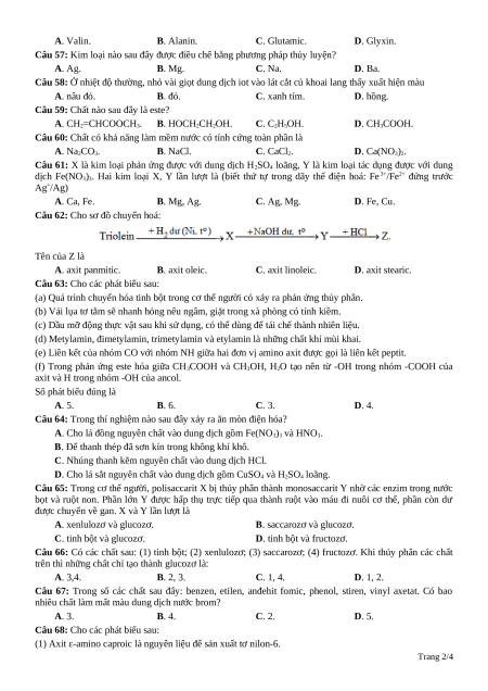 Câu 56: Amino axit H2N-CH2-COOH có tên gọi là Trang 1/4 A. Valin. B. Alanin. C. Glutamic. D. Glyxin.