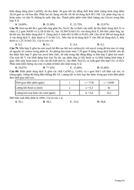 vừa đủ thu được hỗn hợp khí Y gồm CO2, H2O, N2 và 10,6 gam Na2CO3. Cho toàn bộ hỗn hợp khí Y qua Trang 3/4